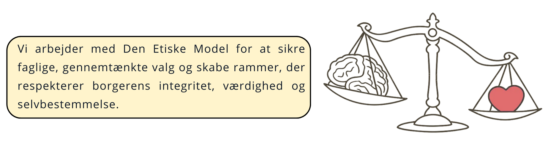 Når flere hensyn, værdier og behov er i spil, bruger vi modellen til at skabe faglige, gennemtænkte valg, der respekterer borgerens integritet, værdighed og selvbestemmelse.